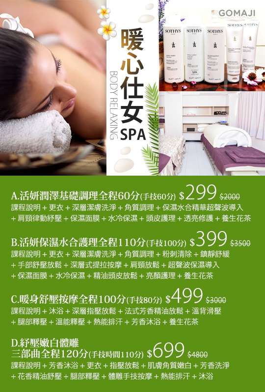暖心仕女SPA - 活動搶便宜141777 討論,推薦,開箱,CP值,熱賣,團購,便宜,優惠,介紹,排行,精選,特價,周年慶,體驗,限時