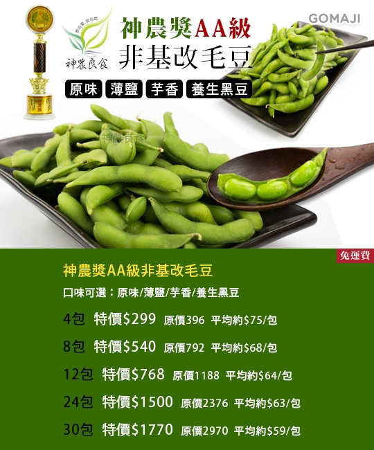 一個剛從國外回來的朋友想購買神農獎AA級非基改毛豆 4包起 - 141994