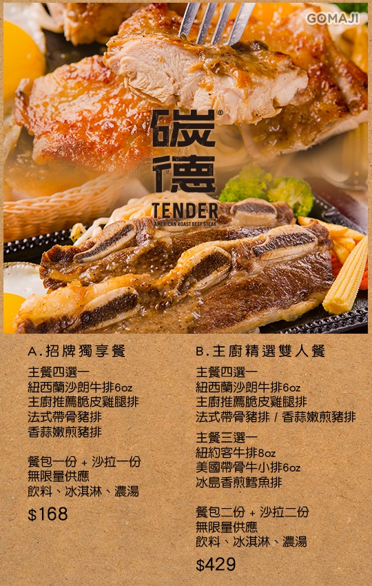 TENDER碳德美式牛排館 - 137323 討論,推薦,開箱,CP值,熱賣,團購,便宜,優惠,介紹,排行,精選,特價,周年慶,體驗,限時