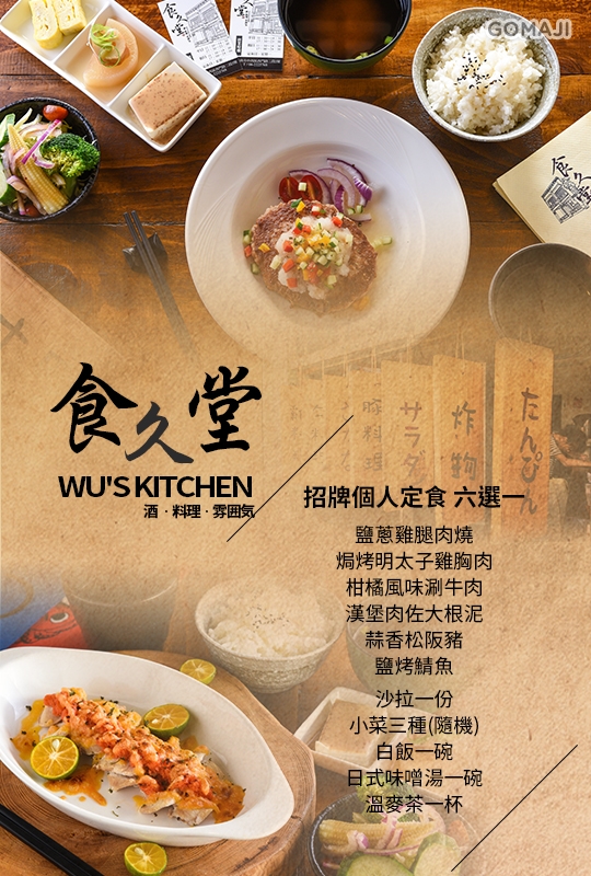 近新光三越西門店,【食久堂 WU'S KITCHEN】飄洋過海帶來道地家常的日式美味,嚴選新鮮食材,用心手作招牌定食,給您多種不同主餐選擇,快來嚐鮮!